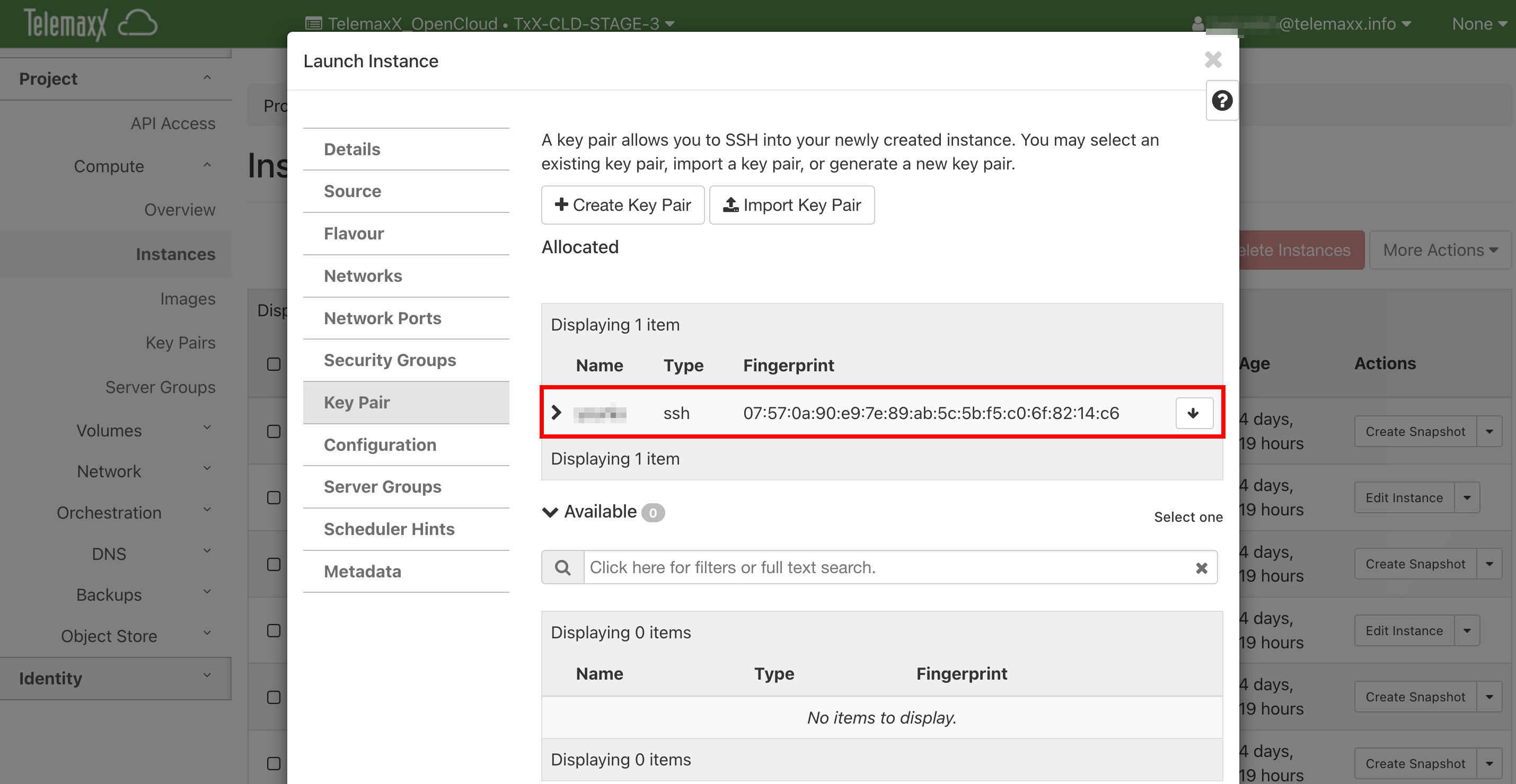 Zum Schluss fügen Sie ihren SSH-Schlüssel hinzu und klicken unten rechts auf Launch Instance.