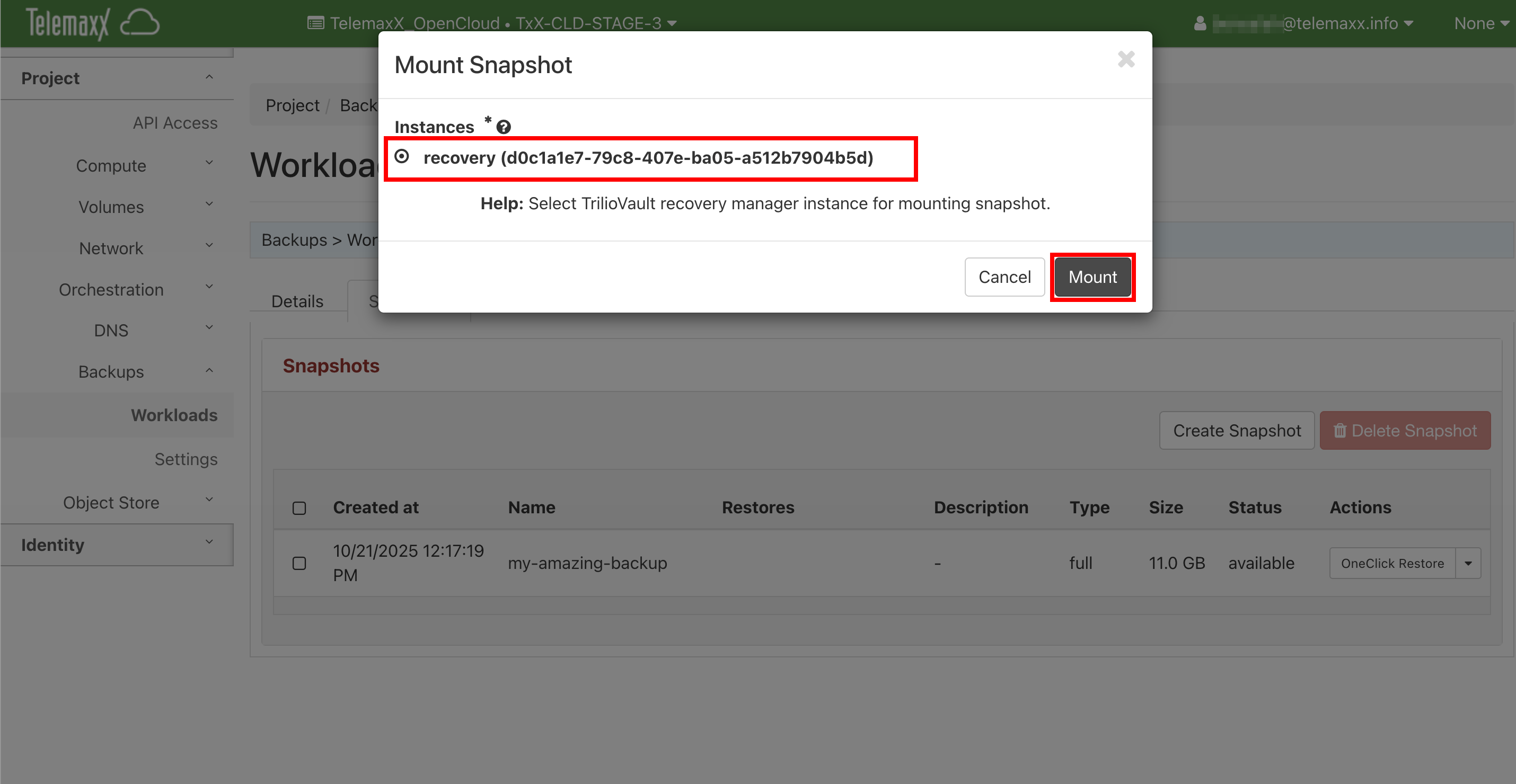 Es besteht in der OpenCloud die Möglichkeit, selektiv auf die Daten eines beliebigen Backups (Snapshots) zuzugreifen, ohne die jeweilige Instanz wiederherstellen zu müssen. Dies kann aus verschiedenen Gründen hilfreich sein: