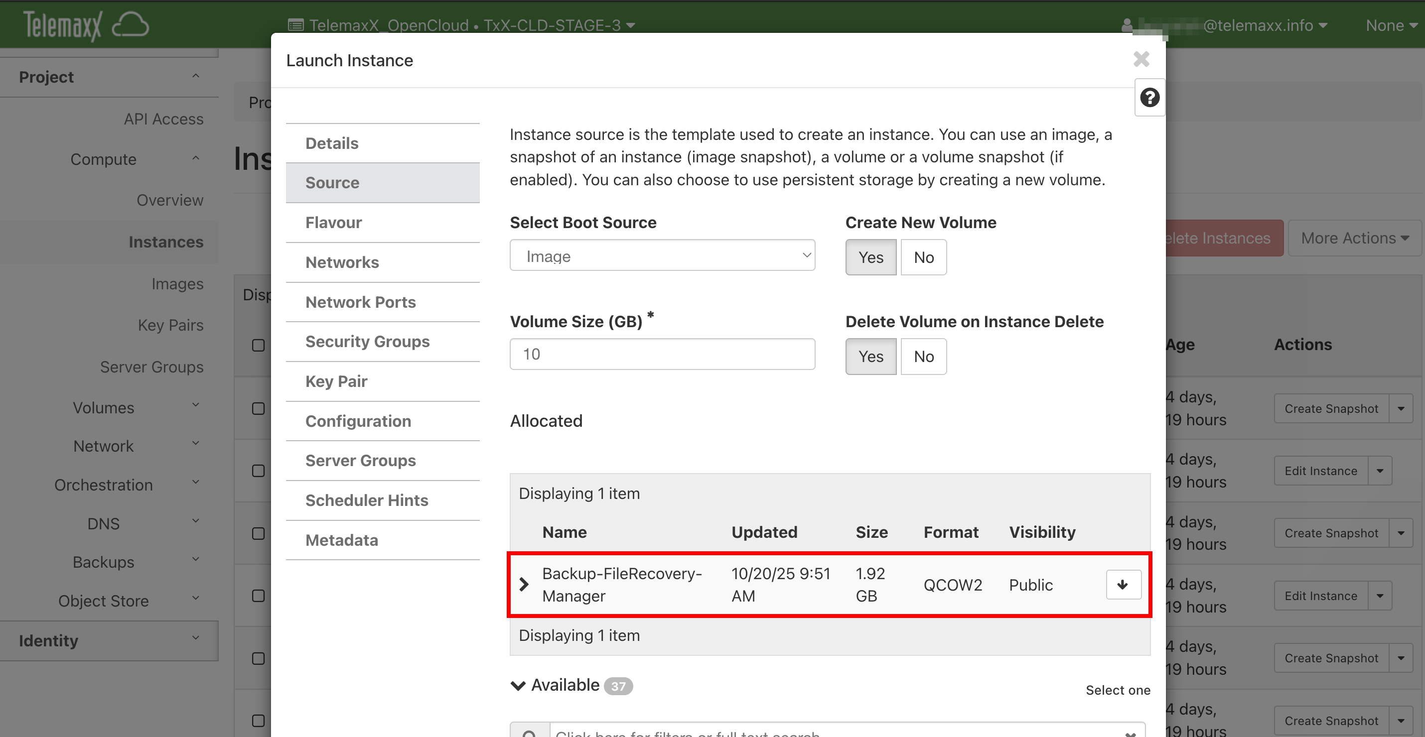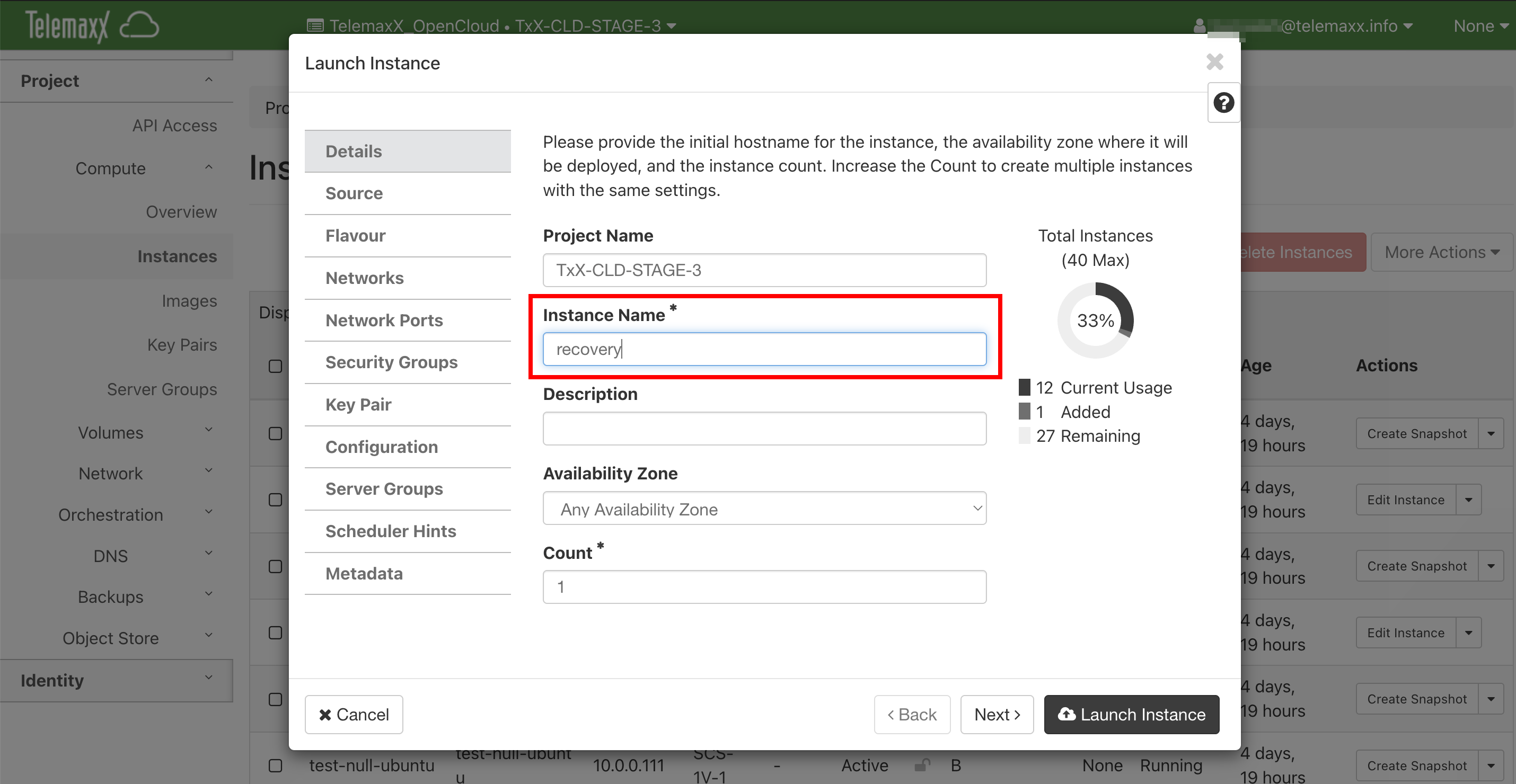 Navigieren Sie zu: Compute → Instances → Launch Instance