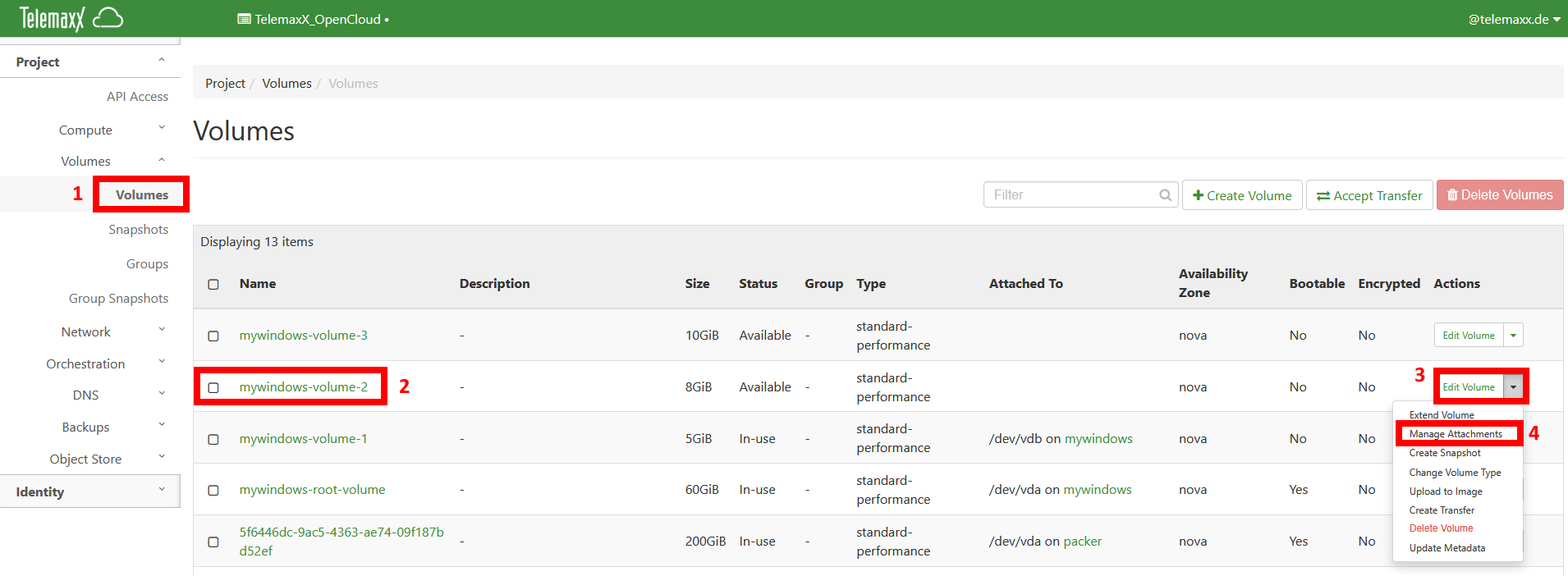 Sie haben eine Windows-Instanz ausgerollt und möchten mehrere Volumes mit dieser Instanz verbinden.
