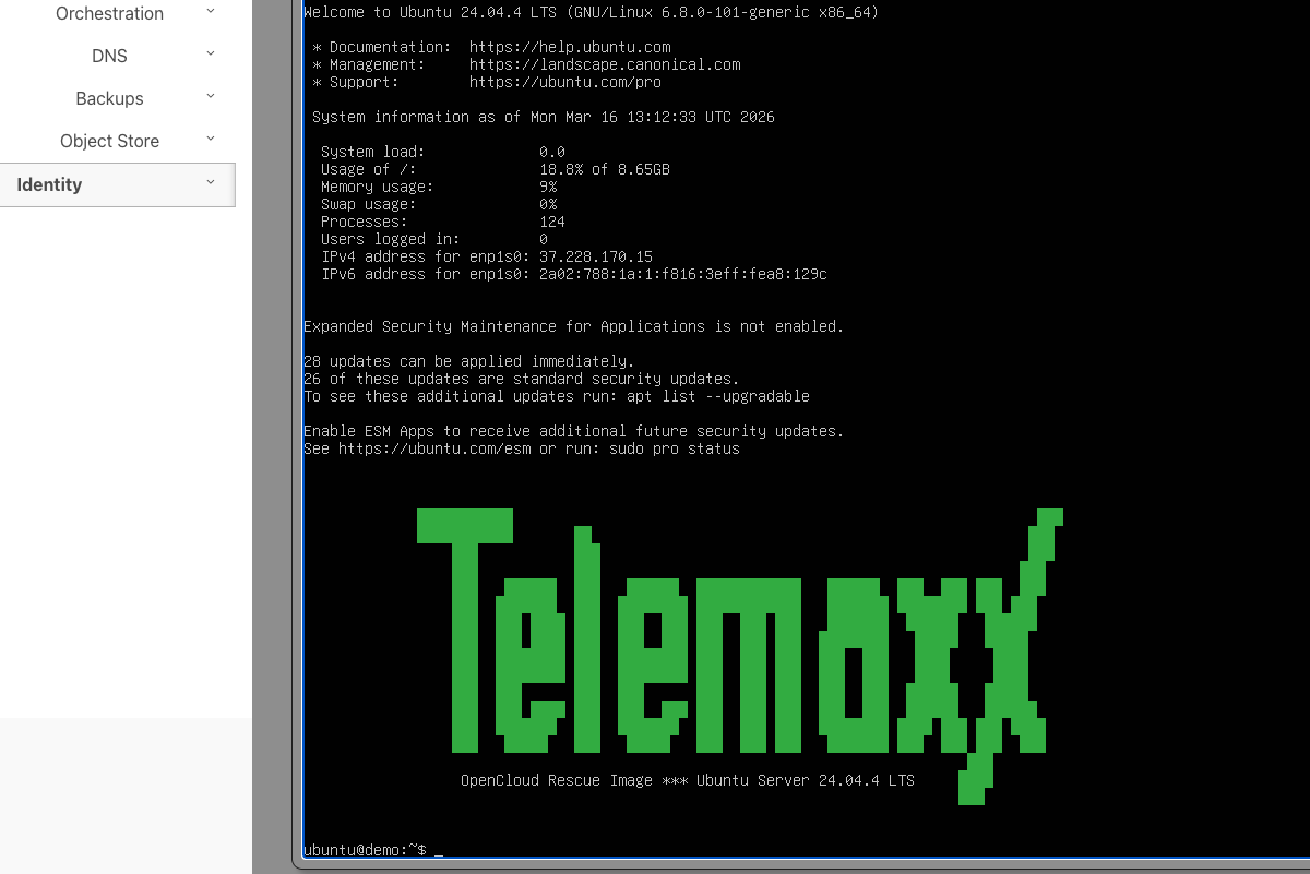 Beim Start in den Rescue Mode bootet die VM nicht in ihr ursprüngliches Betriebssystem, sondern in ein separates, Ubuntu-basiertes Rescue Image. Dadurch unterscheidet sich auch der Zugriff von einem normalen Login auf die VM.