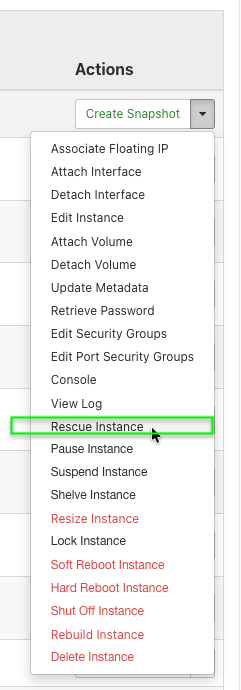 Im Dropdown-Menü der Instanz Rescue Instance auswählen