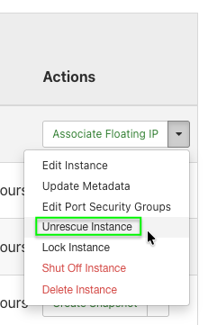 Im Dropdown-Menü der Instanz Unrescue Instance auswählen