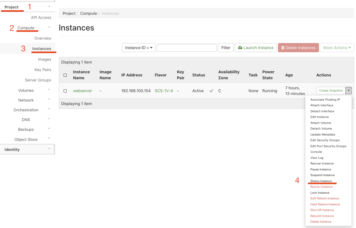 Dies ist insbesondere dann von Vorteil, wenn eine Instanz vorübergehend nicht benötigt wird, etwa zur Kostenoptimierung oder zur Entlastung dero Infrastruktur. Die VM kann zu einem späteren Zeitpunkt über den Vorgang des Unshelving wieder in den vorherigen Zustand versetzt und normal betrieben werden.