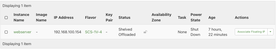 Die VM wurde geshelved und hat den Status "Shelved Offloaded".