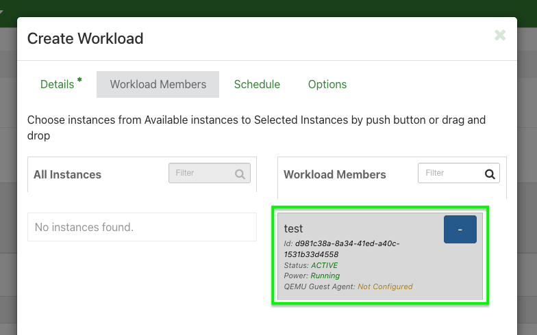 Anschließend über Create Workflow einen Workflow erstellen, welcher die gewünschte VM beinhaltet – hier beispielhaft test genannt.