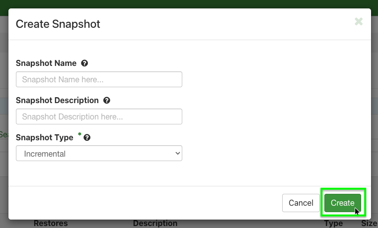 Über Create Snapshot kann nun ein Backup der VM erzeugt werden.
