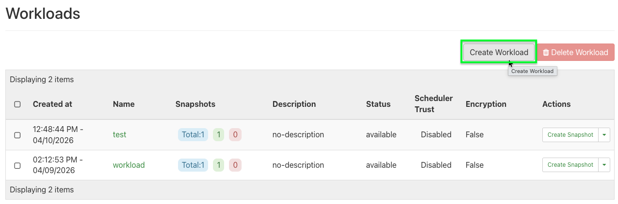 In der Horizon Oberfläche zu Project → Backups → Workloads wechseln.